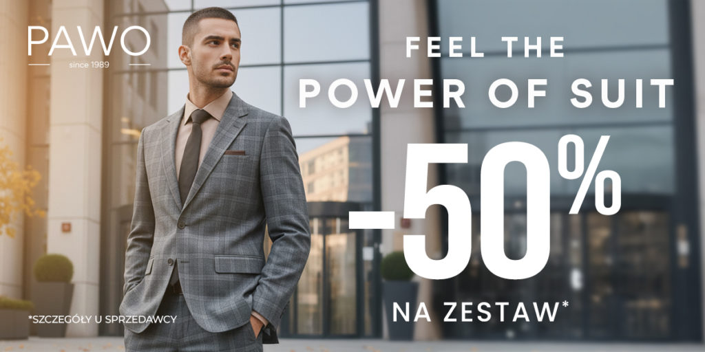 Tylko teraz w salonach PAWO kupisz garnitur z koszulą aż 50% taniej od cen regularnych!