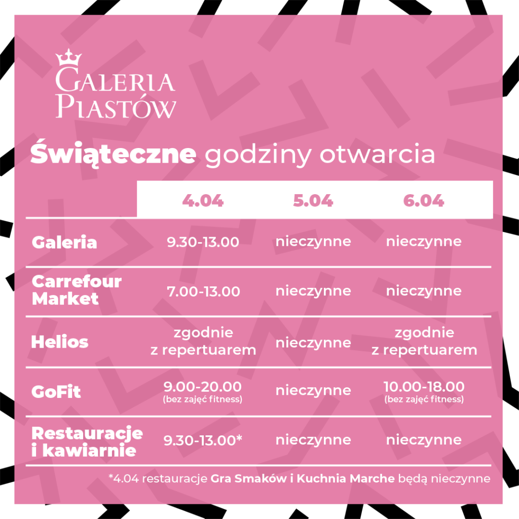 W okresie świątecznym Galeria Piastów będzie otwarta w następujących godzinach: