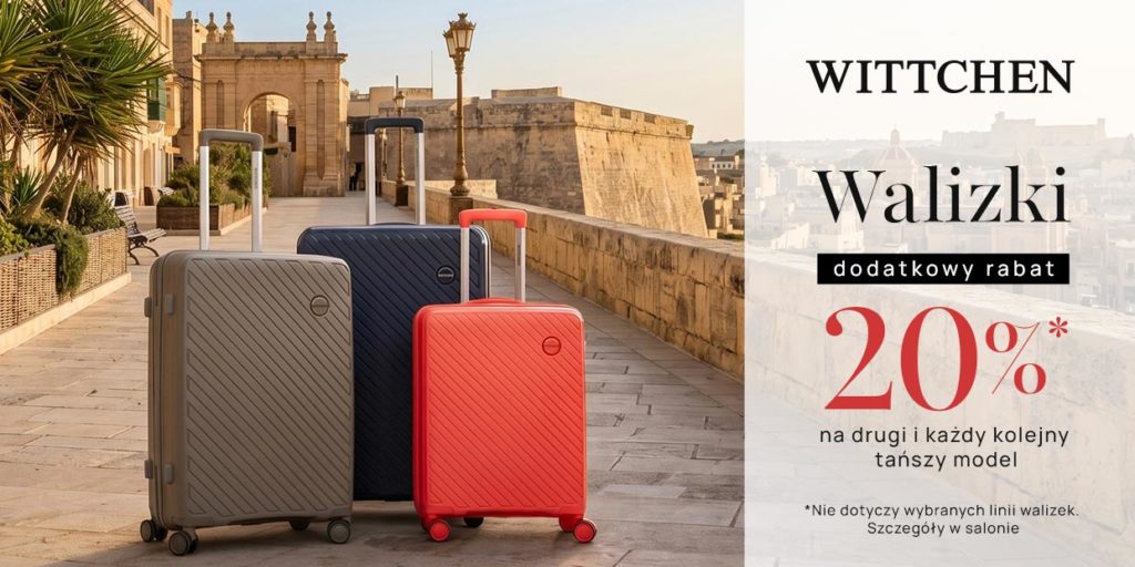 Już teraz ekstra rabat 20% na drugą i kolejną tańszą walizkę.